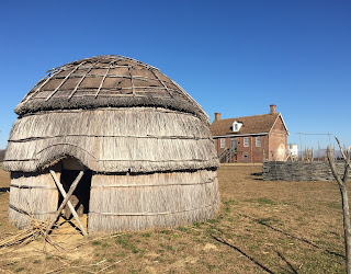 It was a historical marker for Unnacokossimmon – the Emperor to the Nanticoke Native Americans.He lived at the ancient Indian village, Chicone, located in the north part of Vienna, and was the ruler of the region in 1677. The Chicone Village was something on my “To See” list. Research told me I would be able to see the first authentic replica of a single family Native American homestead built using materials and techniques available to prehistoric people, circa pre-1600.